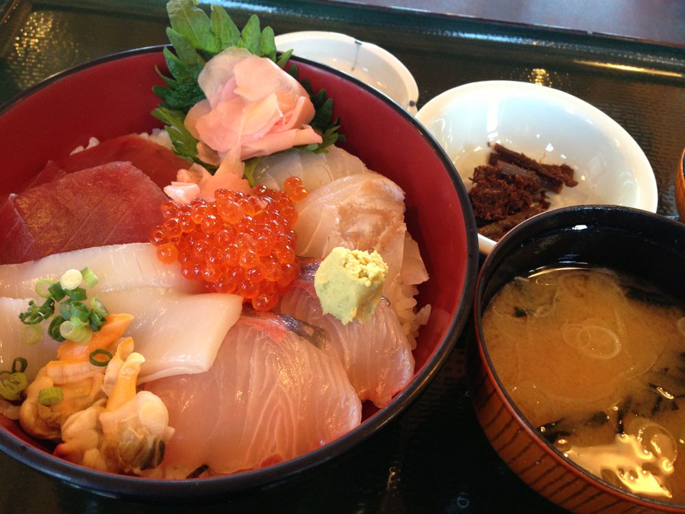 ちなみに食事は海鮮系メイン。僕はあみなや丼(網納屋)を、友人は煮魚定食を。