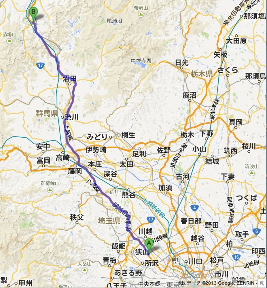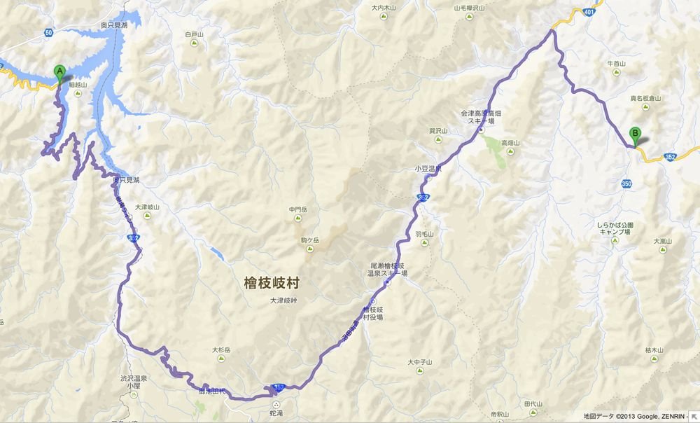 奥只見を抜けて尾瀬の入り口を経由し、そのまま東へ向かいます。
