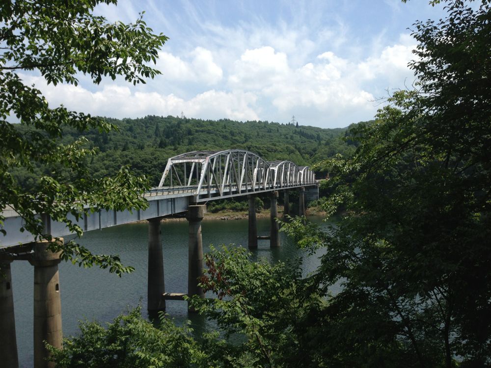 御母衣湖にかかる岩瀬橋でパシャリ。