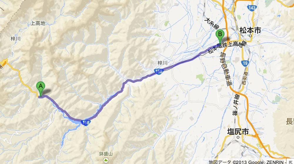 まずは石川PAを出て中央道・長野道でひたすら塩尻まで。