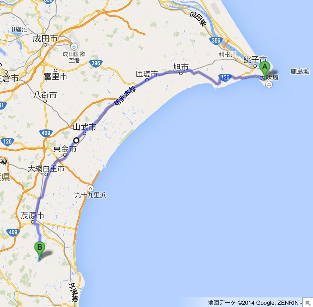 犬吠埼から先は内陸へ少し入り、足早に次の経由地を目指します。