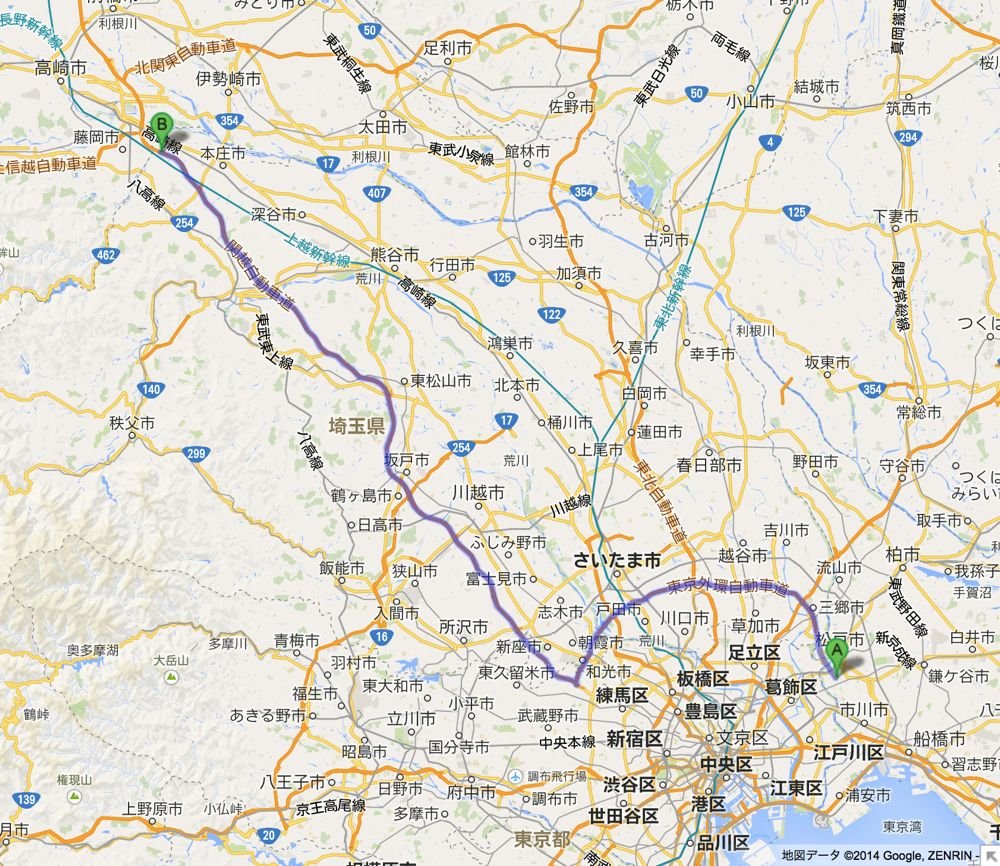 首都高を使わず下道で三郷南まで行き、外環道を全線走って関越へ。