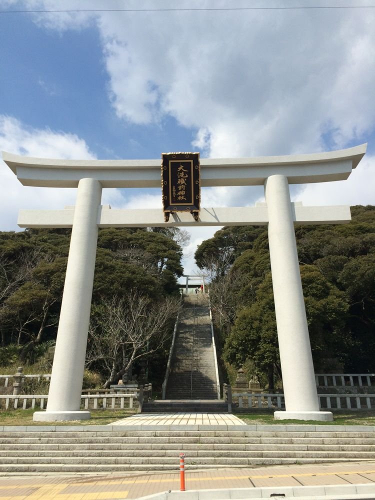 水戸駅前を抜け、大洗に到着。磯前神社を軽く観光します。