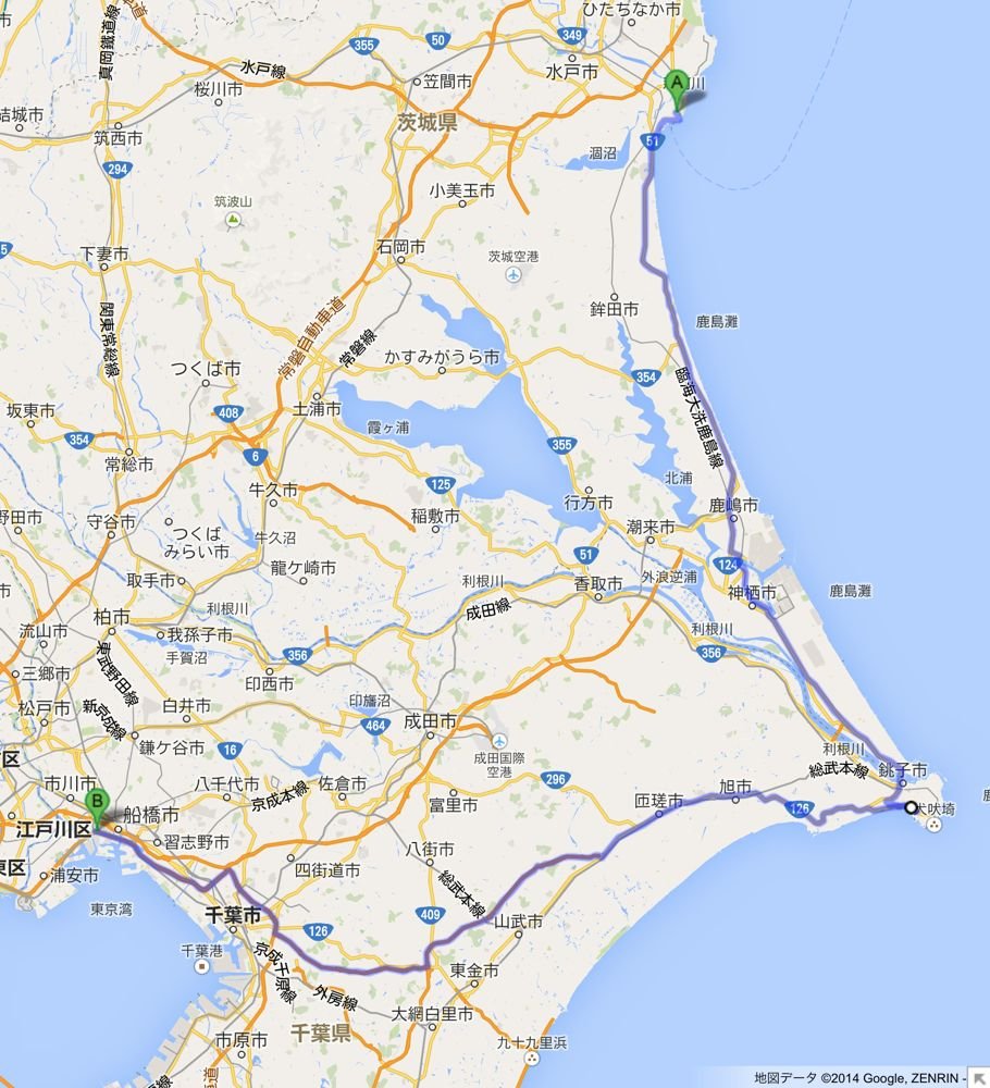 距離かせぎがてら鹿島から犬吠埼を回って帰宅することに。
