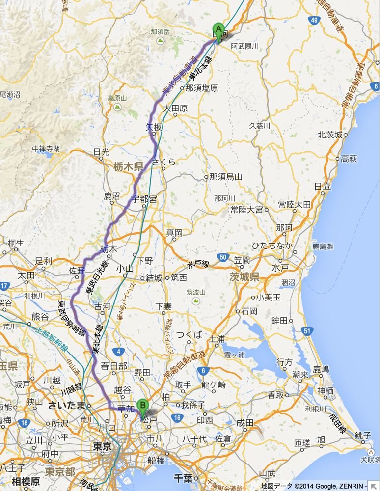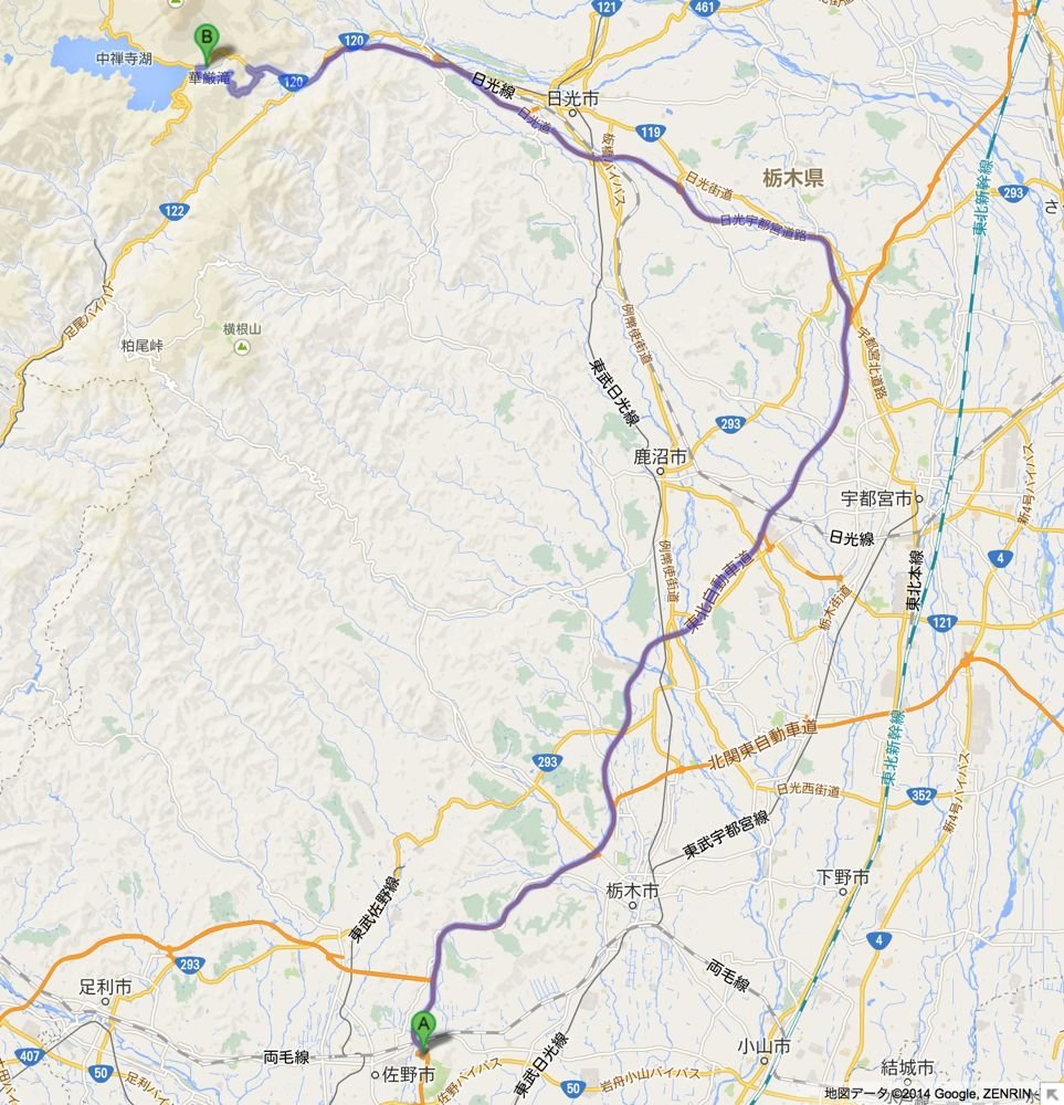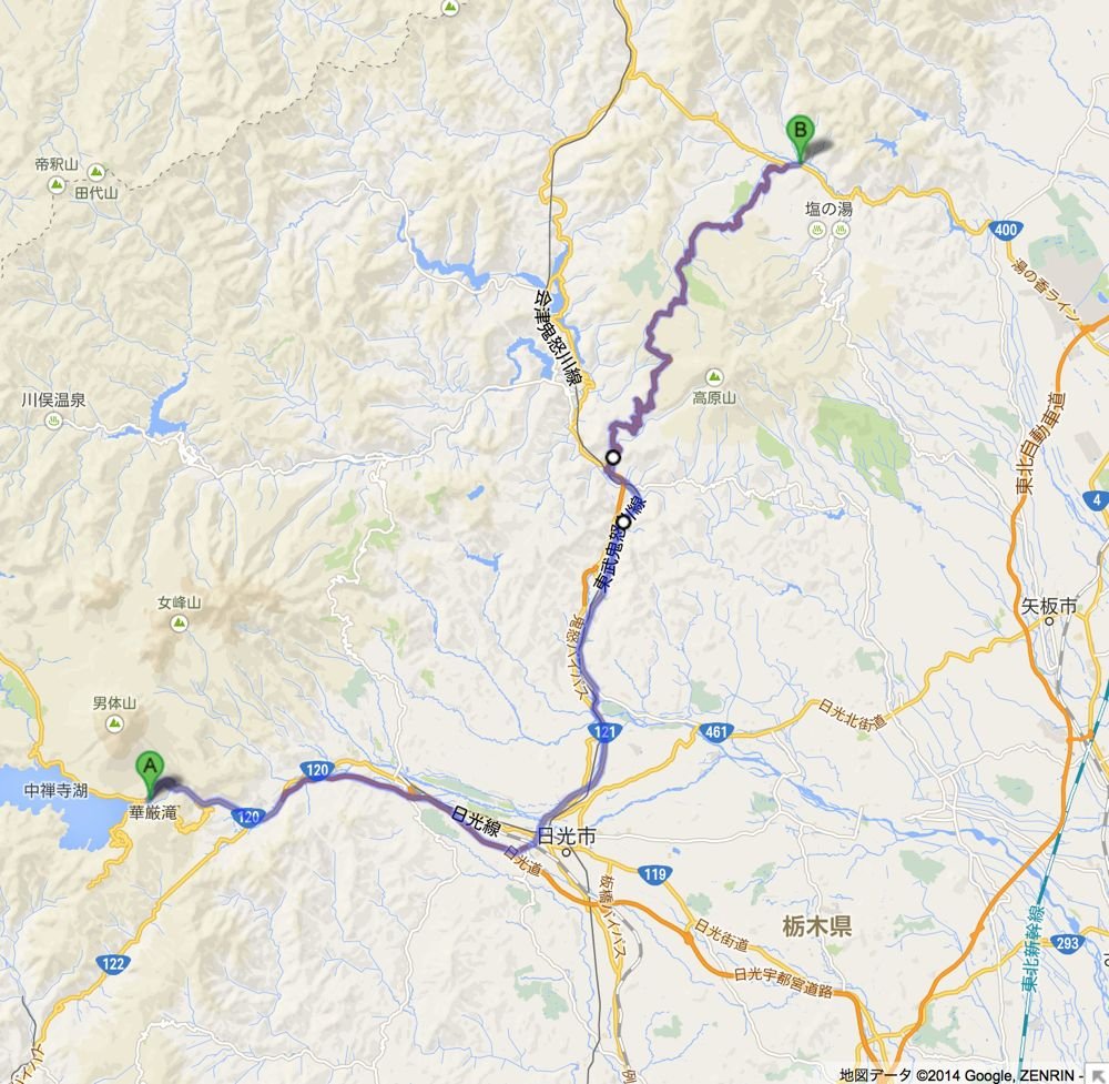 いろは坂を一気に駆け下りたあと、日光市街で北に進路を変え、