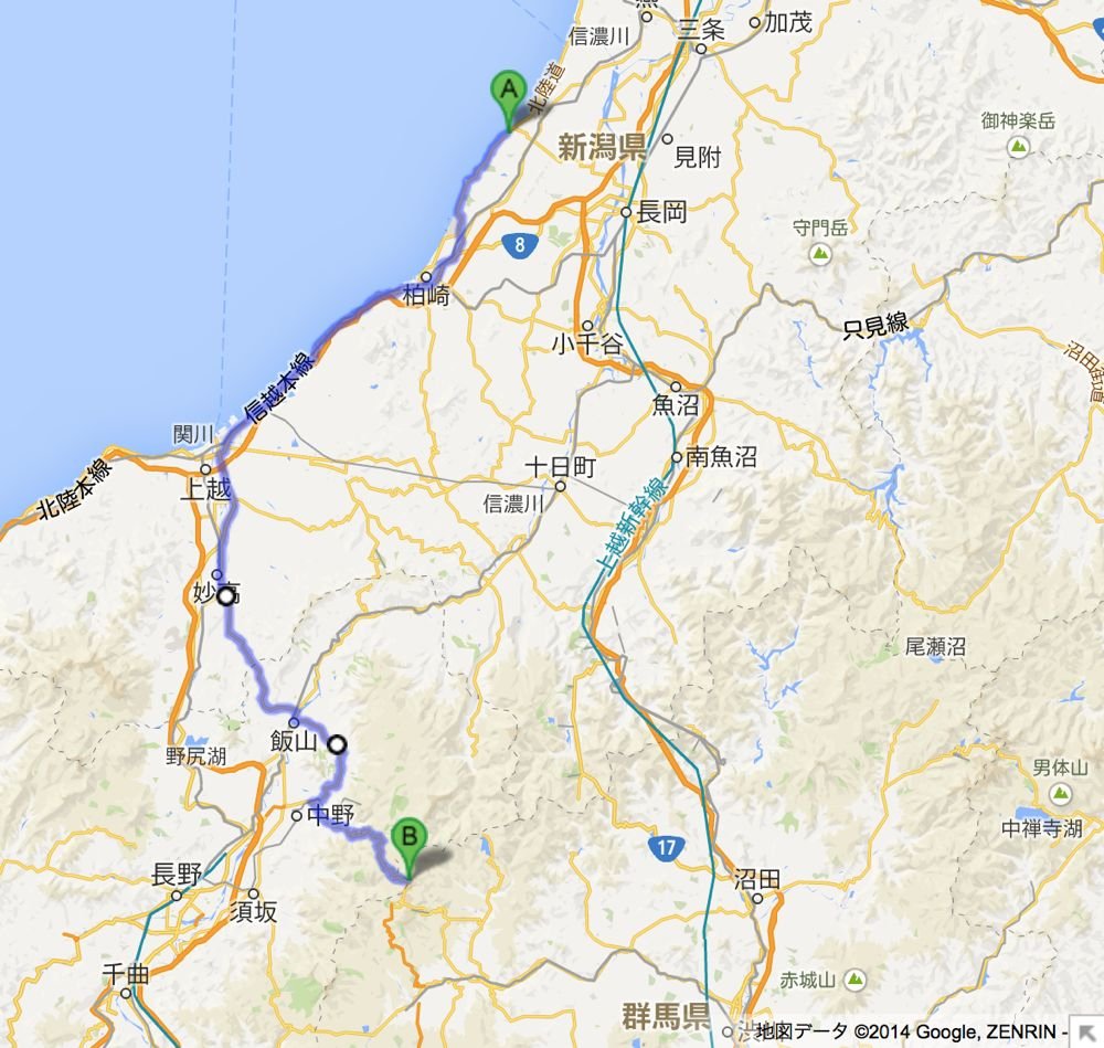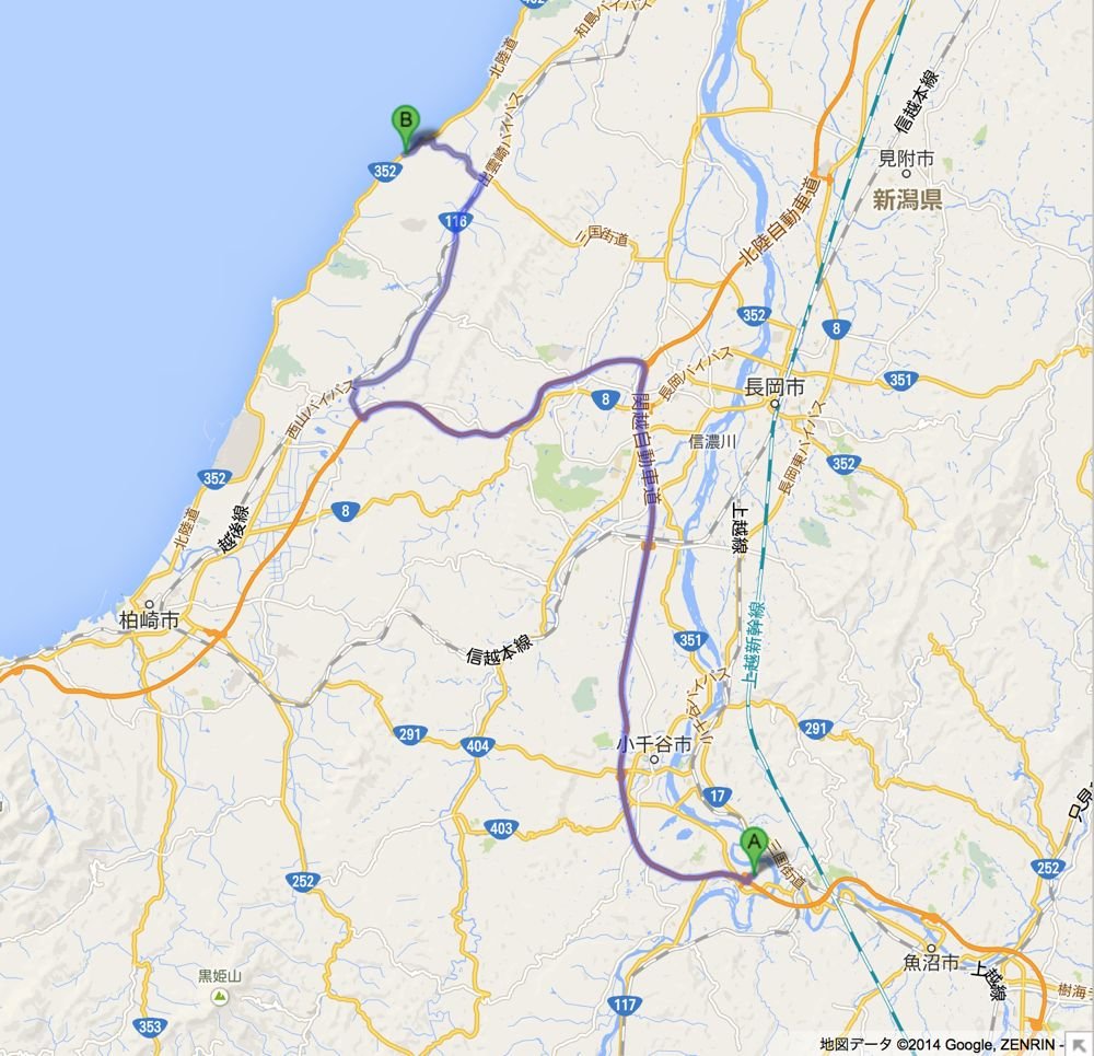今回、目的は渋峠なので、長岡・柏崎方面にまで抜ける必要はなかったのですが