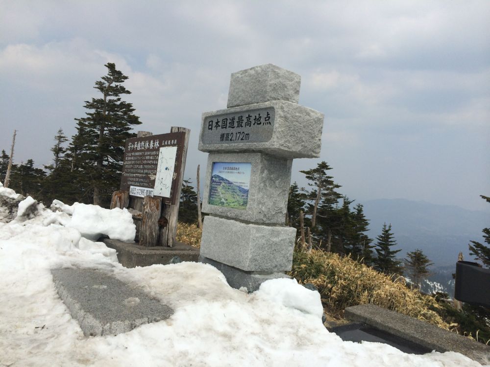 お昼のあとは少し走って国道最高地点でもう一枚記念撮影。