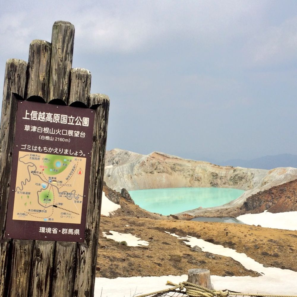湯釜というのは、白根山の火口に溜まった温泉の湖のこと。