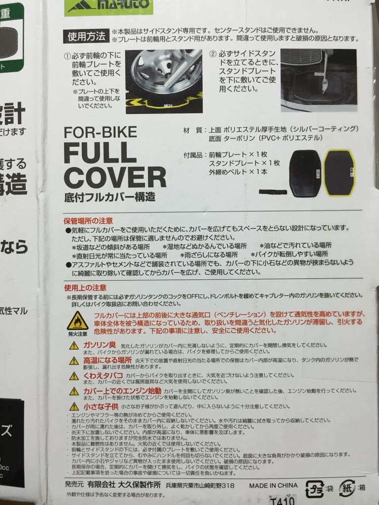 バイクの保管場所変更に伴ってバイクカバーが必要になったので、