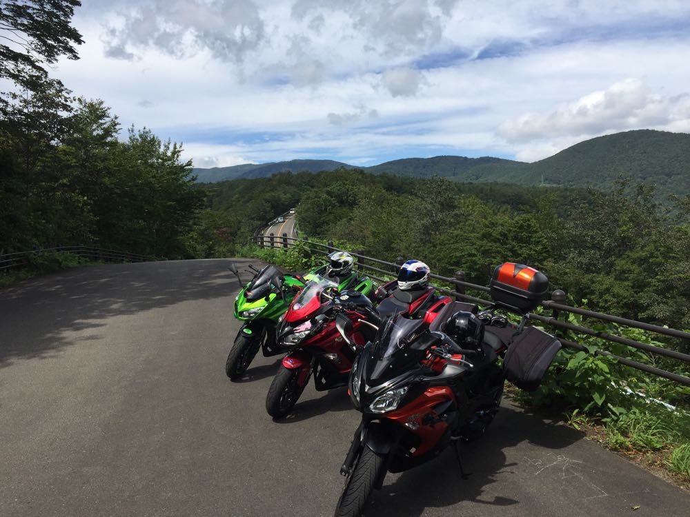途中、滝見台で小休止。本日の面子はお馴染みの赤Ninja1000、橙Ninja400、そして私。