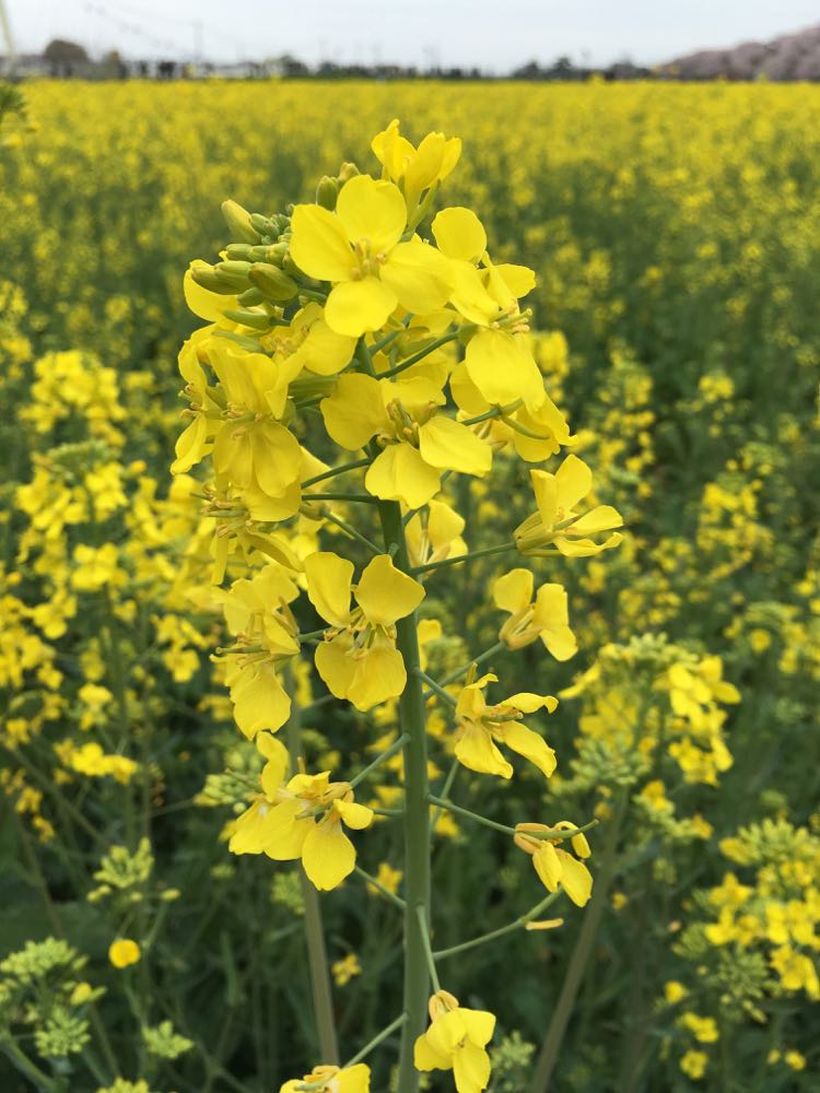桜並木の中からチラチラと見えるのが菜の花畑。