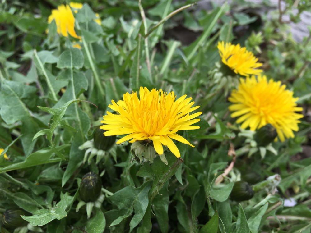 炉端にはたんぽぽも咲いていて、脇役ながら彩を豊かにします。