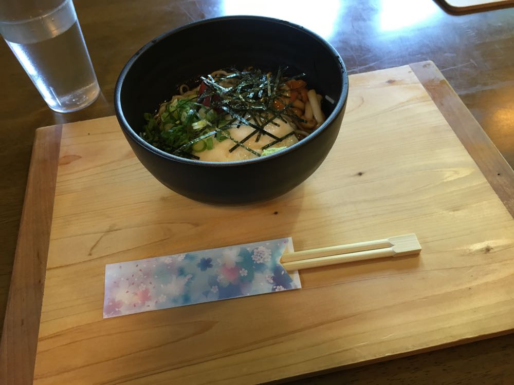 朝がっつり油物たべたので、さっぱりとろろそば。