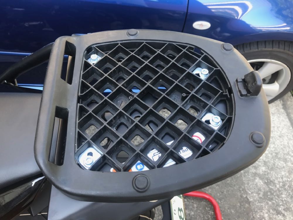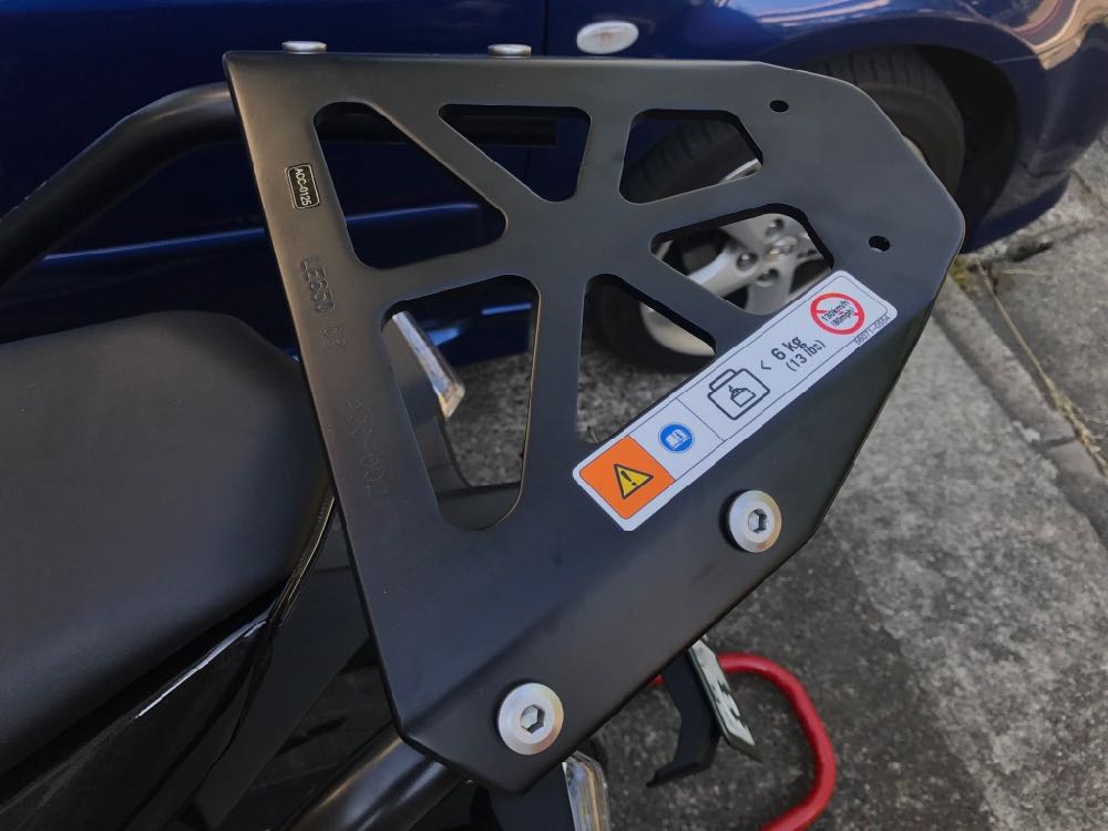 あとはこれも納車時に取り付けていただいた純正のトップケースブラケットに・・・