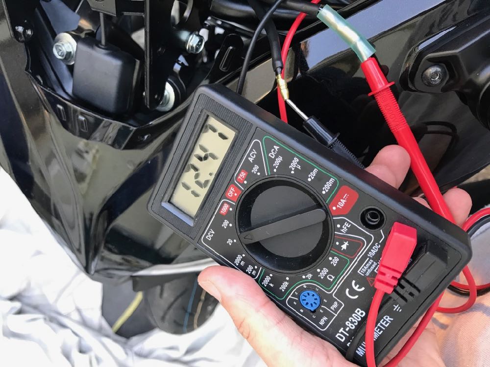 キーオフで無通電、キーオンで12Vをしっかり確認。