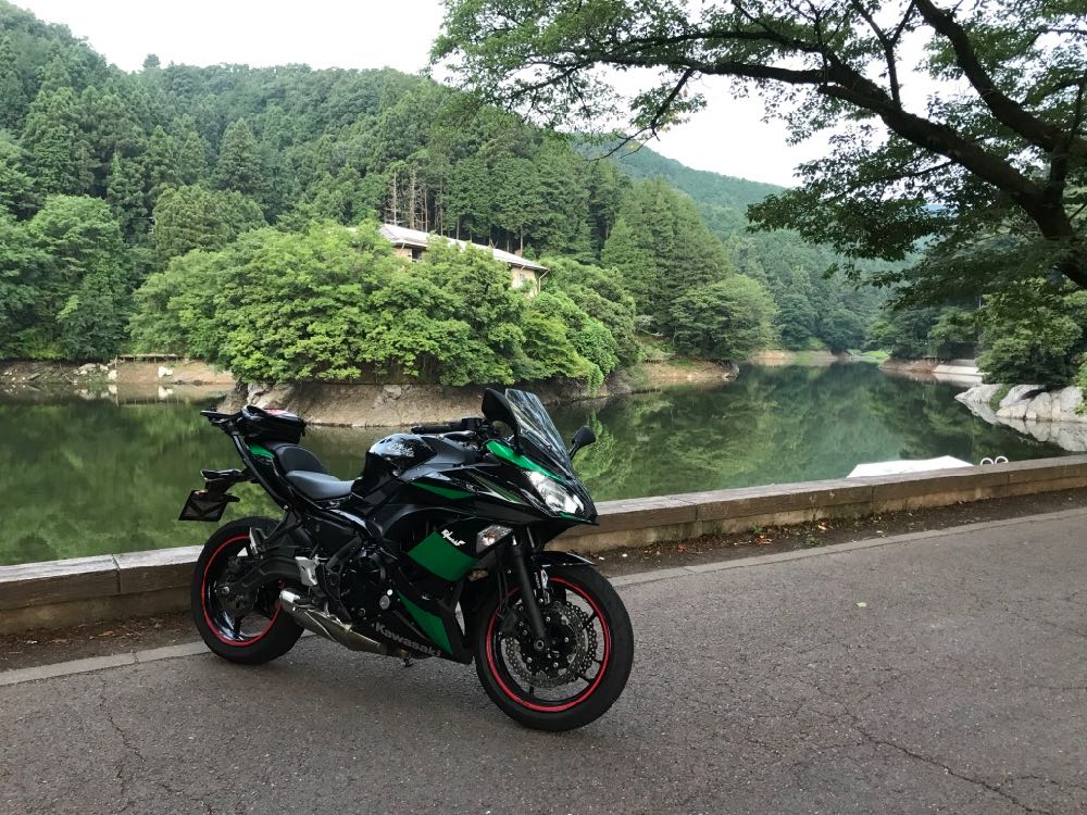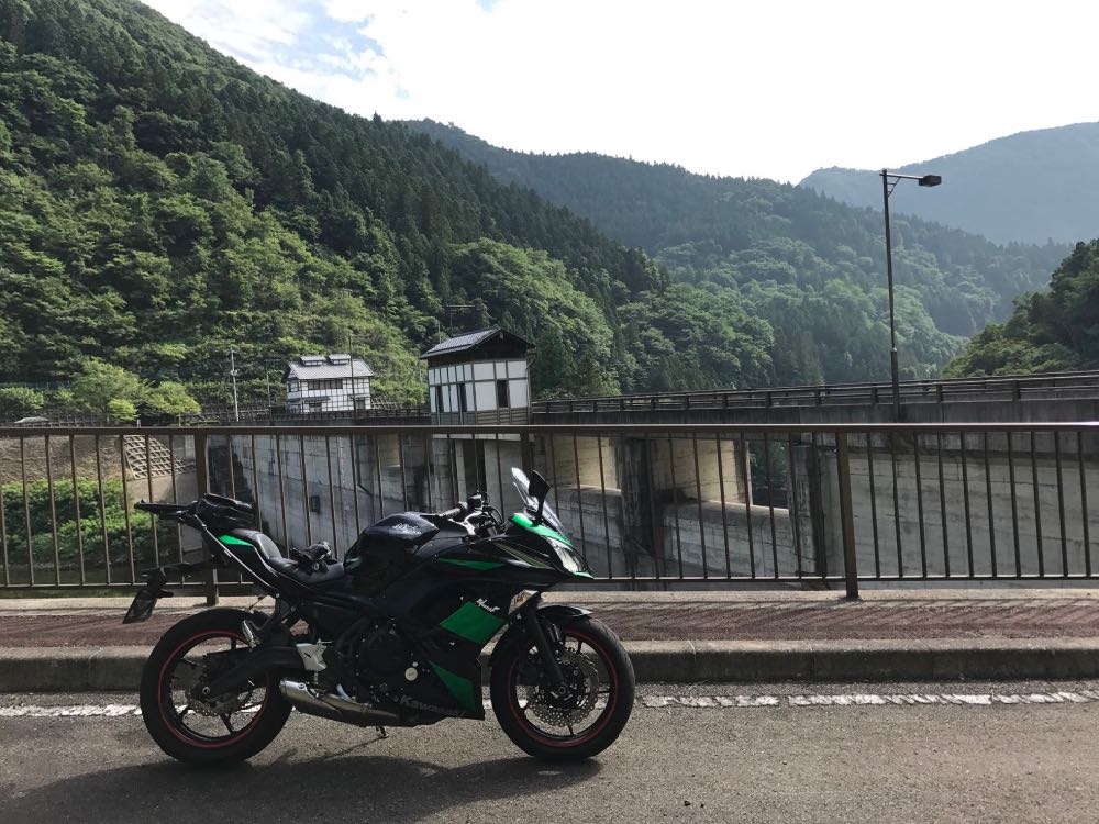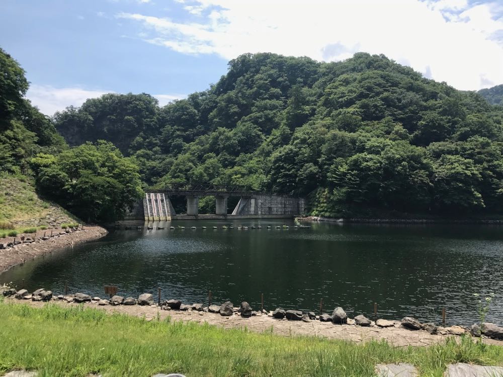 ちょうど塩沢ダムの脇を通過するので、ダムに近づいて一服。