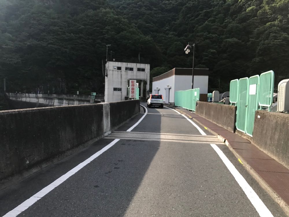 ゆるやかにカーブしたダムの天端をそろそろと進んでいきます。