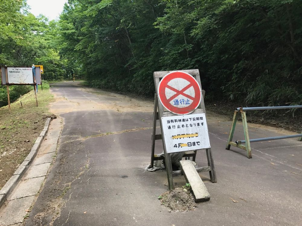 林道が進行方向を東に向け、少しいったところで通行止め。
