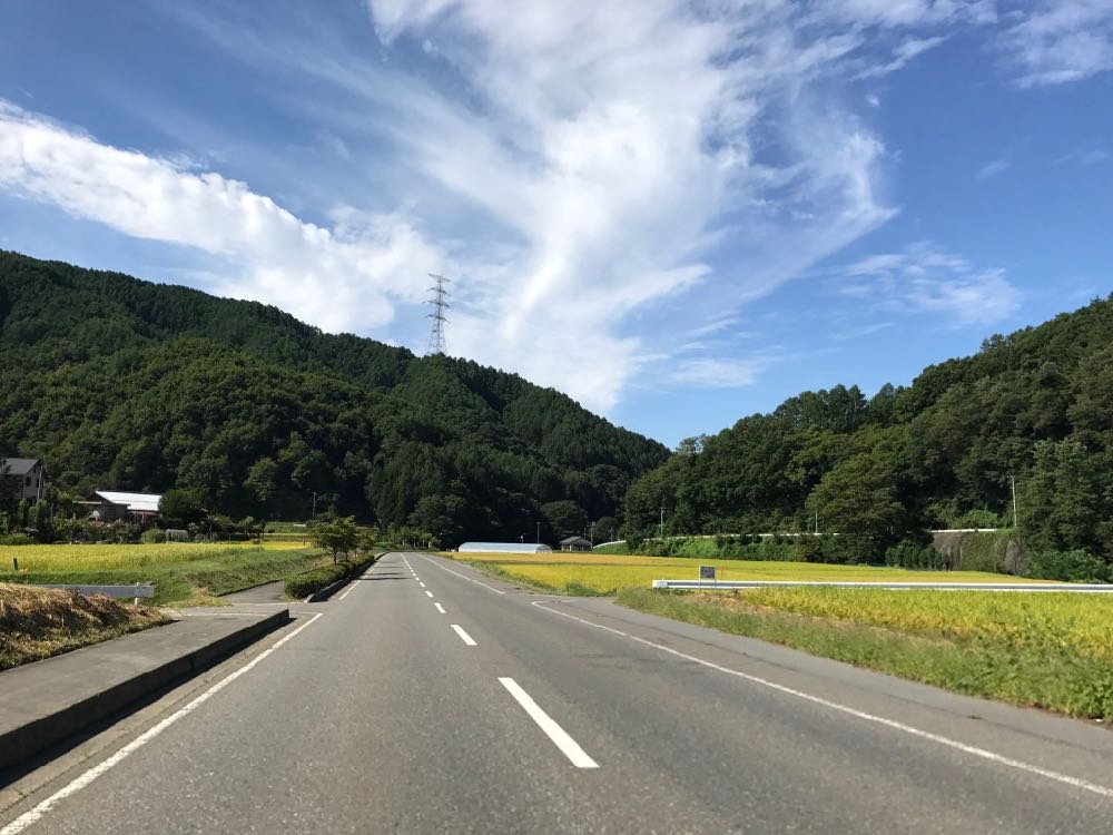 ひらけた広い道をしばらく走ると、遠山に入ります。