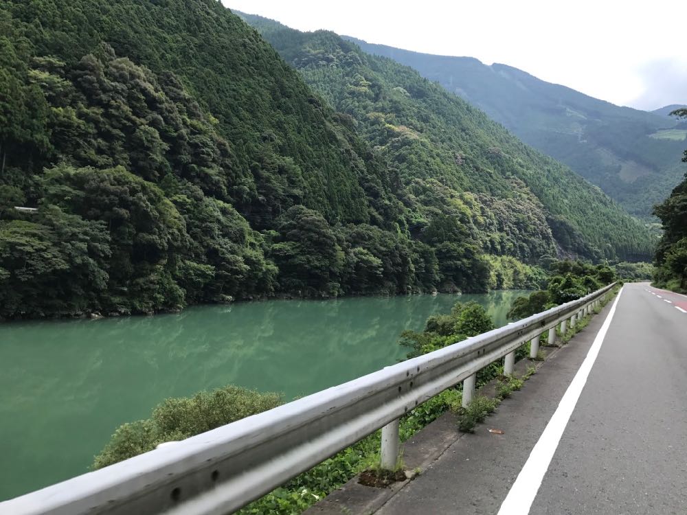 このあたりはまだ道も広くて快適ですが、左右はずっと切り立った山。