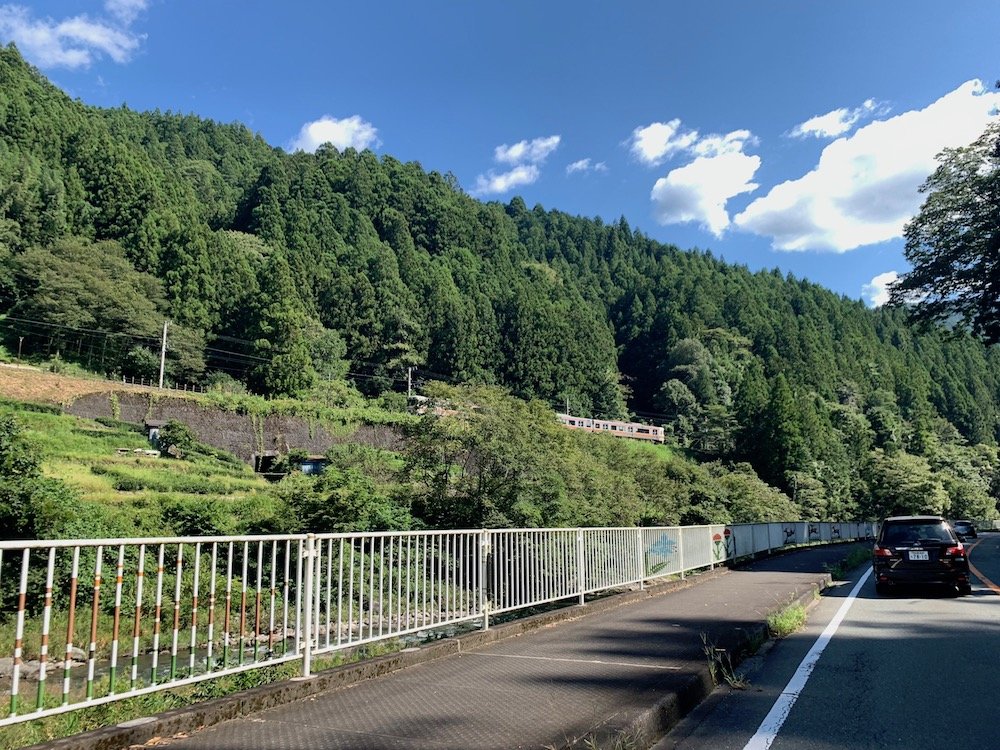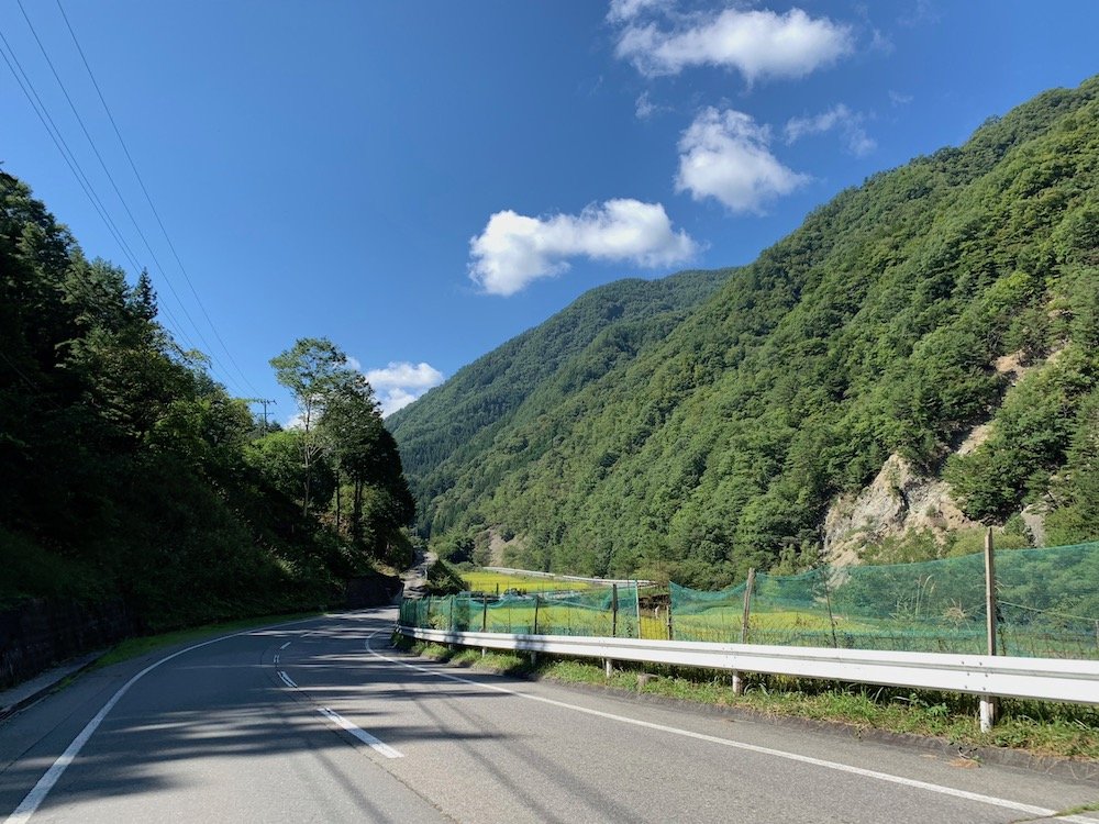 152号線沿いは山に挟まれた谷筋をずっと抜けていく道。