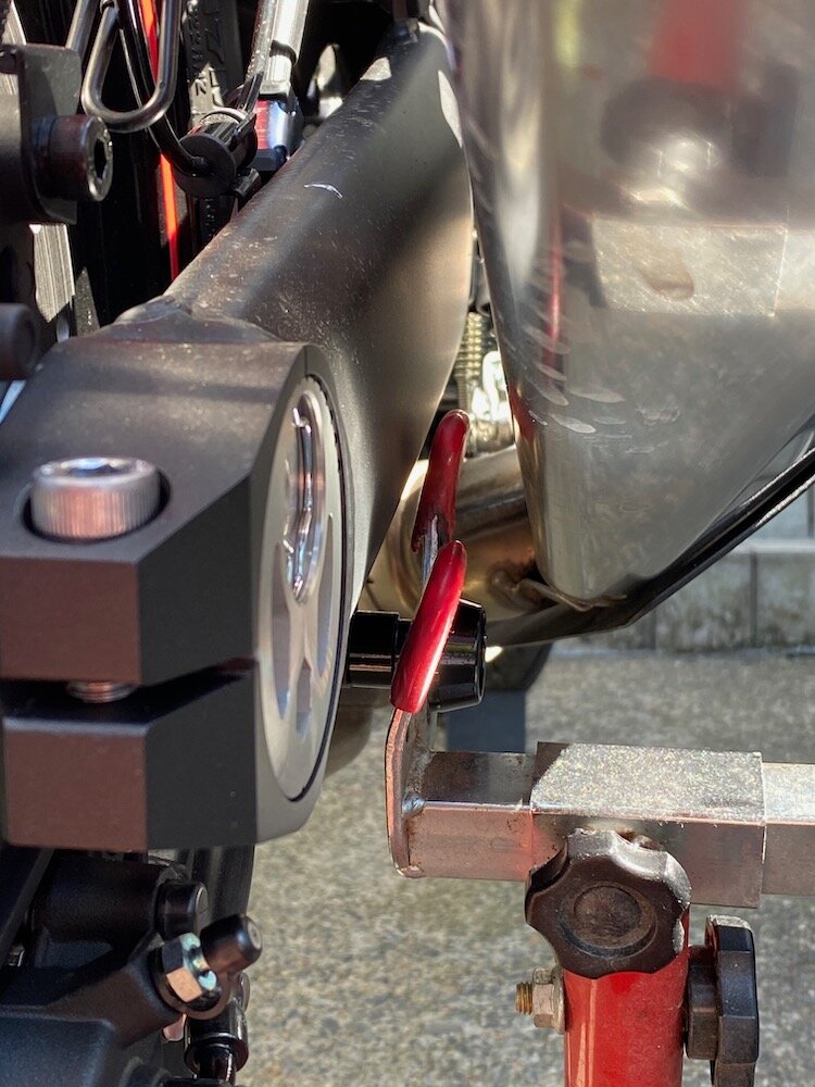 マフラーが変わってもスタンドフックのクリアランスは