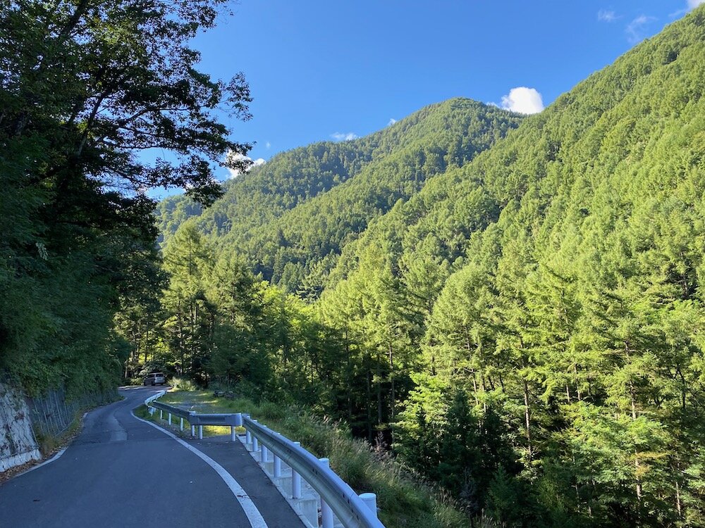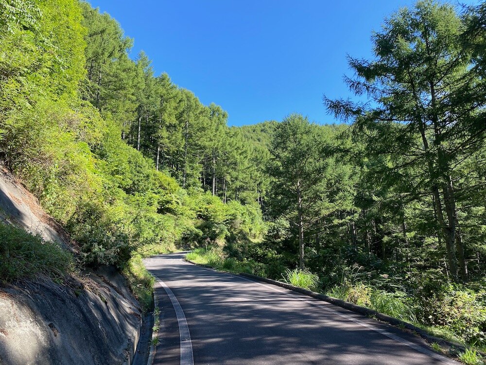 この道は諏訪湖に近いあたりは住宅が多く交通量が多いものの、北へいくほど山へ入り、気持ちの良いワインディングロードになっていきます。