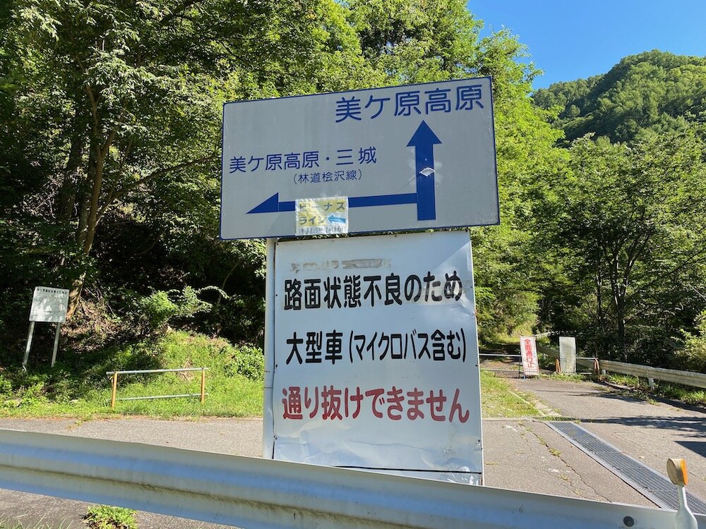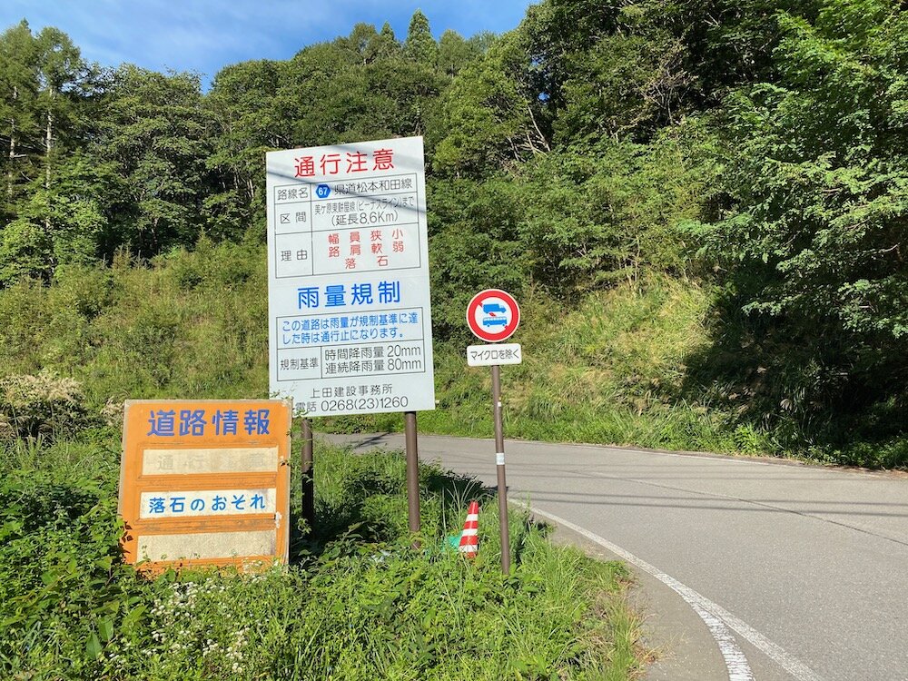 道の入り口付近には大きな目立つ看板が繰り返し現れ、この先の道がどういうものか教えてくれます。