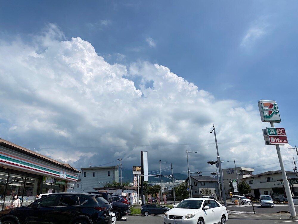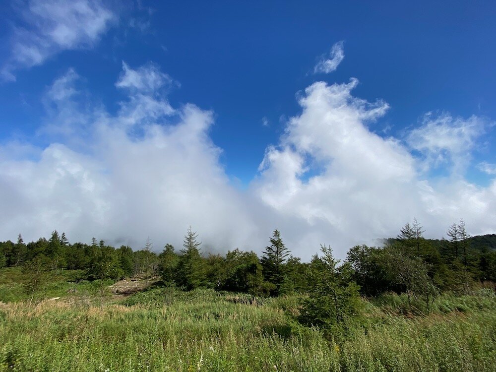 タライで起こしたドライアイスの煙を眺めているような、目線より下の夏の雲はなんだか違和感たっぷりの景色です。