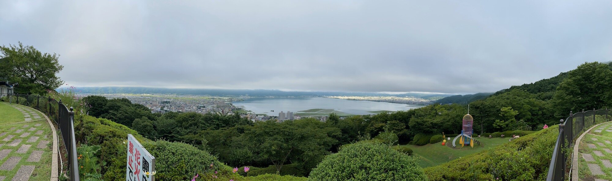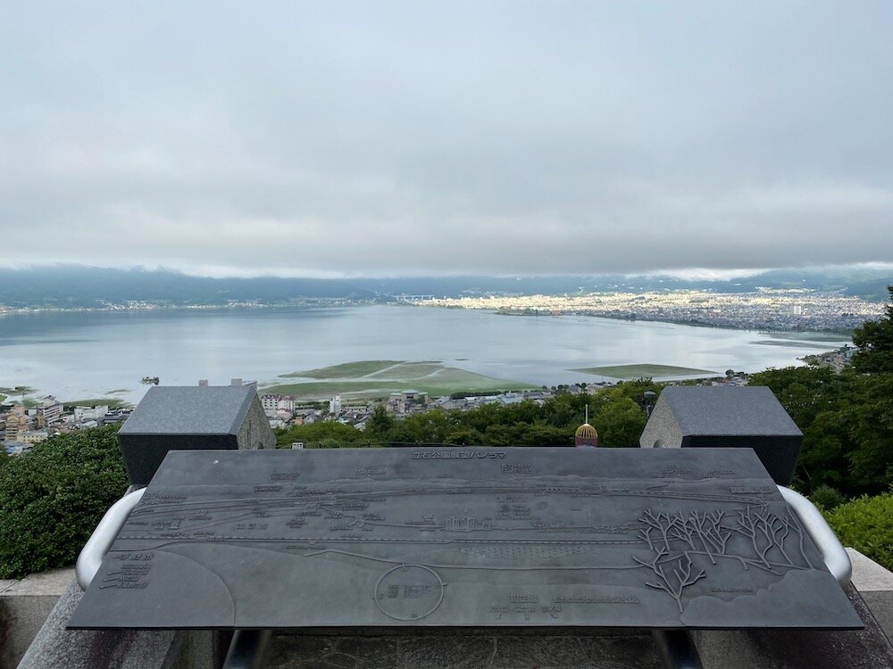 とはいえ、湖畔の左手に広がる諏訪、右手に広がる下諏訪・岡谷の市街地が一望できるパノラマは目を覚ますには十分及第点。