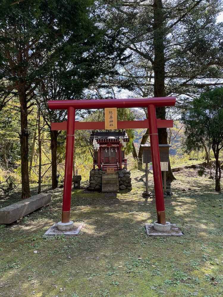 熊ノ平には神社も建立され、脇には土砂災害の慰霊碑も。