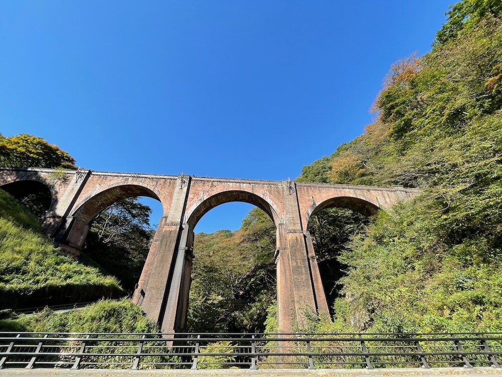 碓氷川をひとまたぎにする、おおきなレンガの橋です。