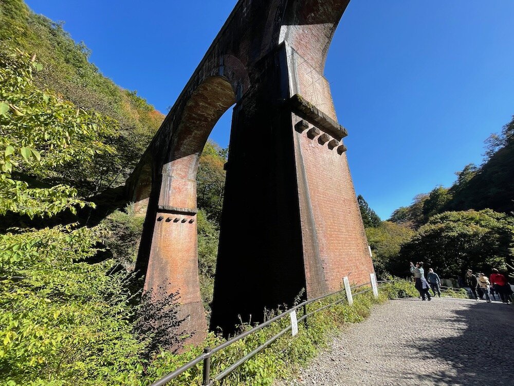 もちろん、最近の高速道路や新幹線のコンクリート橋に比べれば小さいのですが、それでもこの大きさのものを120年前に、しかもレンガ積みで作ったというのが驚き・・・・