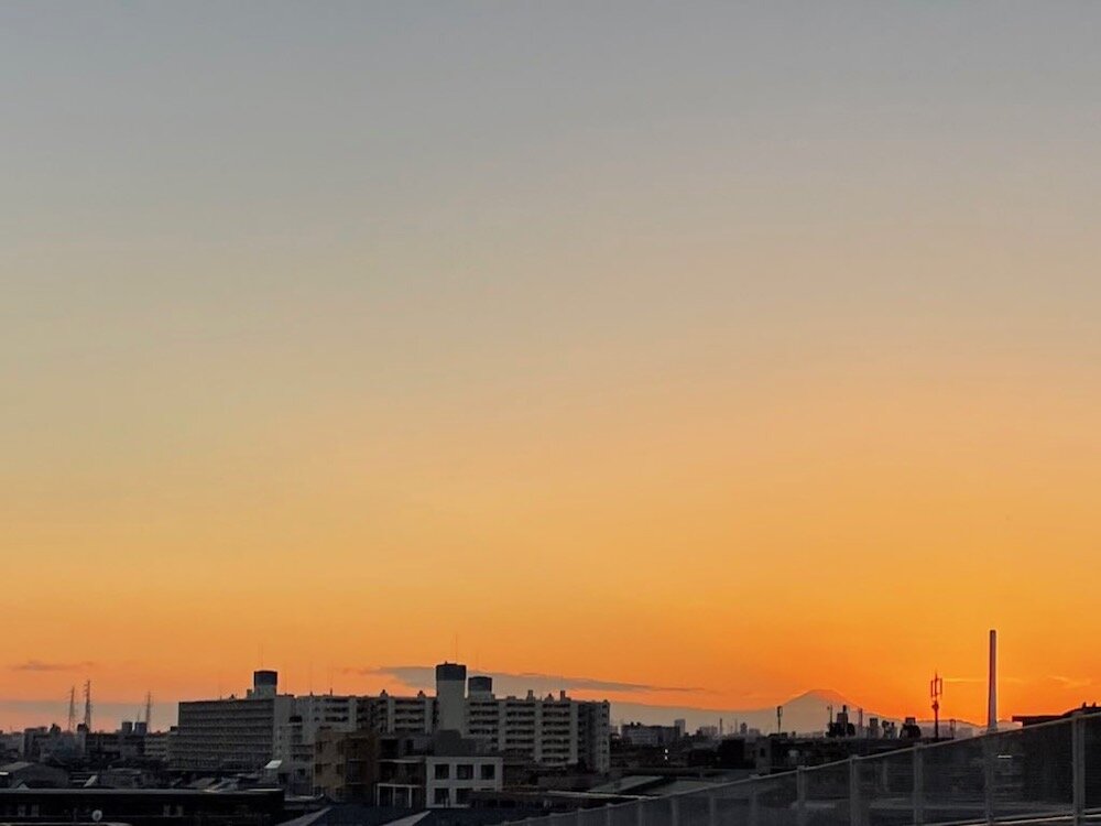最後まで完璧な晴れ模様、自宅付近からも富士山のシルエットが夕焼けにクッキリと浮かび上がっていました。