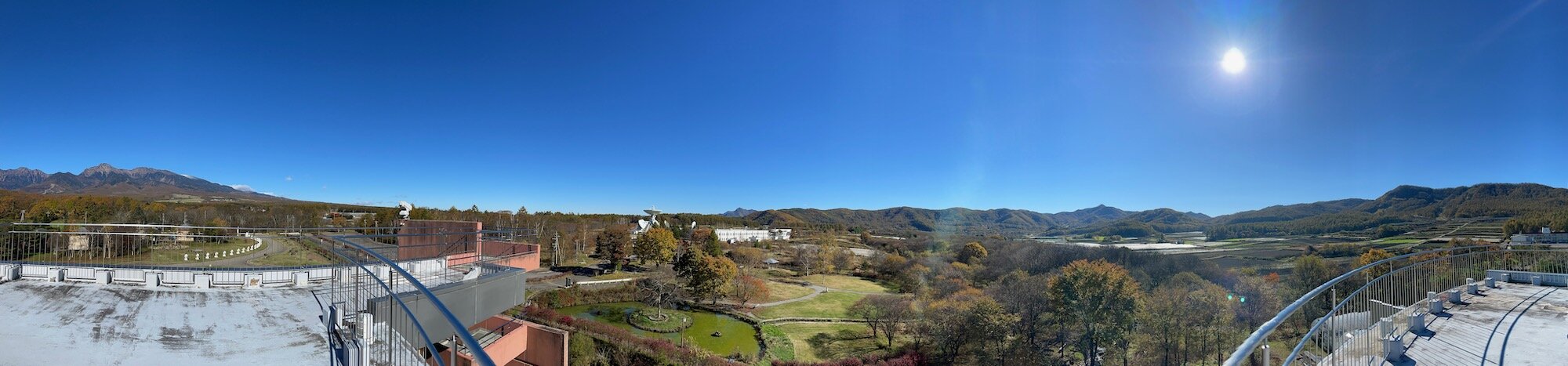 標高が高く、周りを山に囲まれた野辺山は大気や電波的雑音の影響を受けずに天体観測するのに最適な立地なんですね。