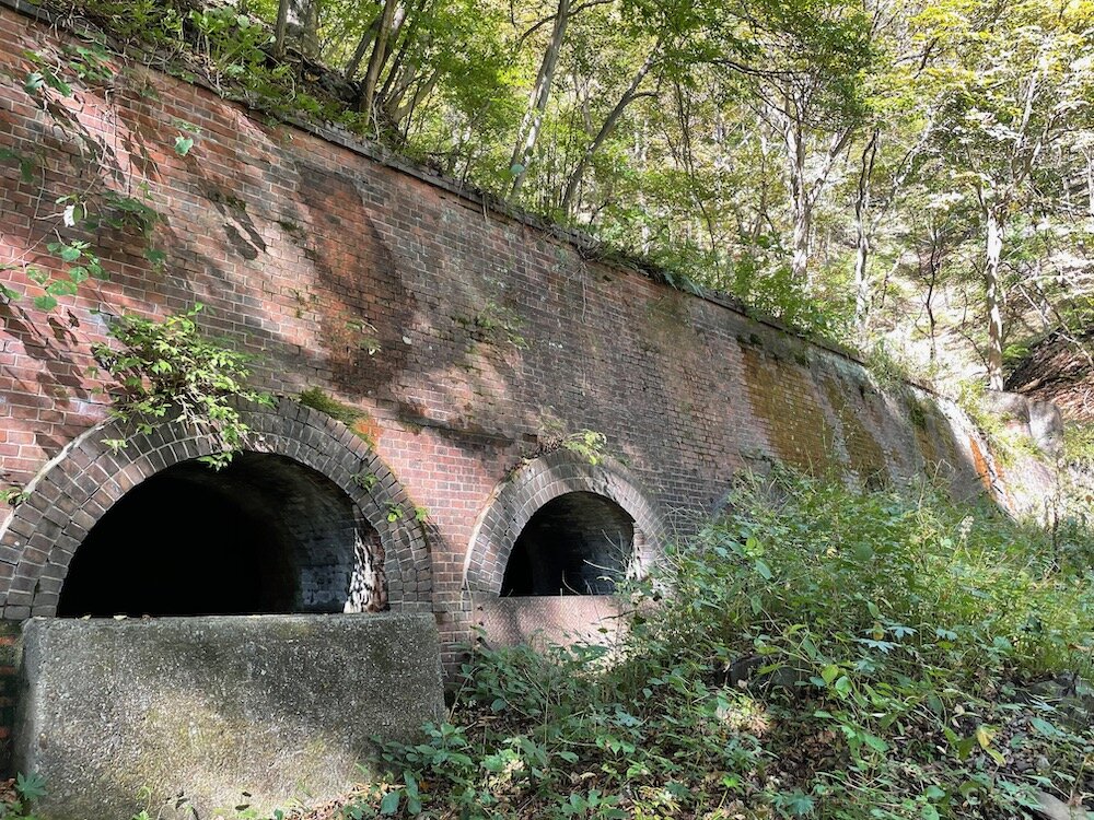 山を深く貫くトンネルではなく、煙の出る機関車を使っていたからこその設備ですね。