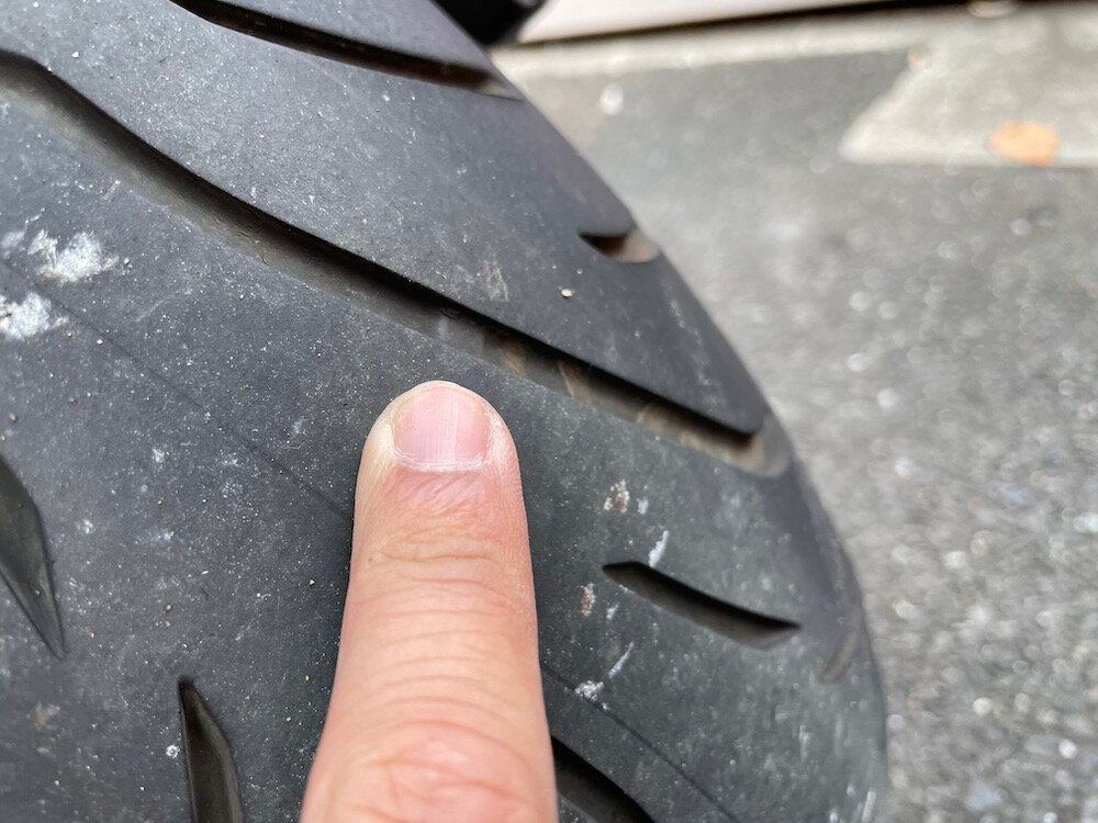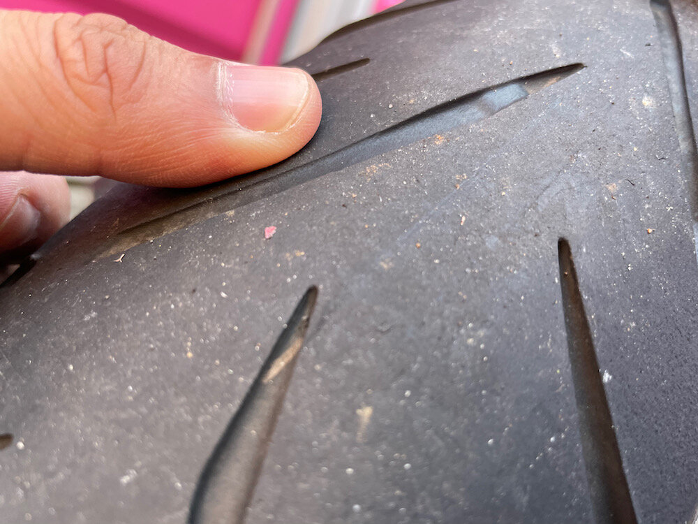 センターのスリップサインはまだ出ていませんでしたが、この溝の深さはNGでしょう。