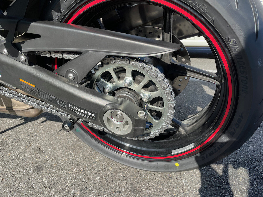 リッタークラスのチェーンは耐久性も高いですし、こまめにメンテナンスもしているのでそんなにヘタってきていたわけではないですが、予防の意味もコミで早めの交代です。