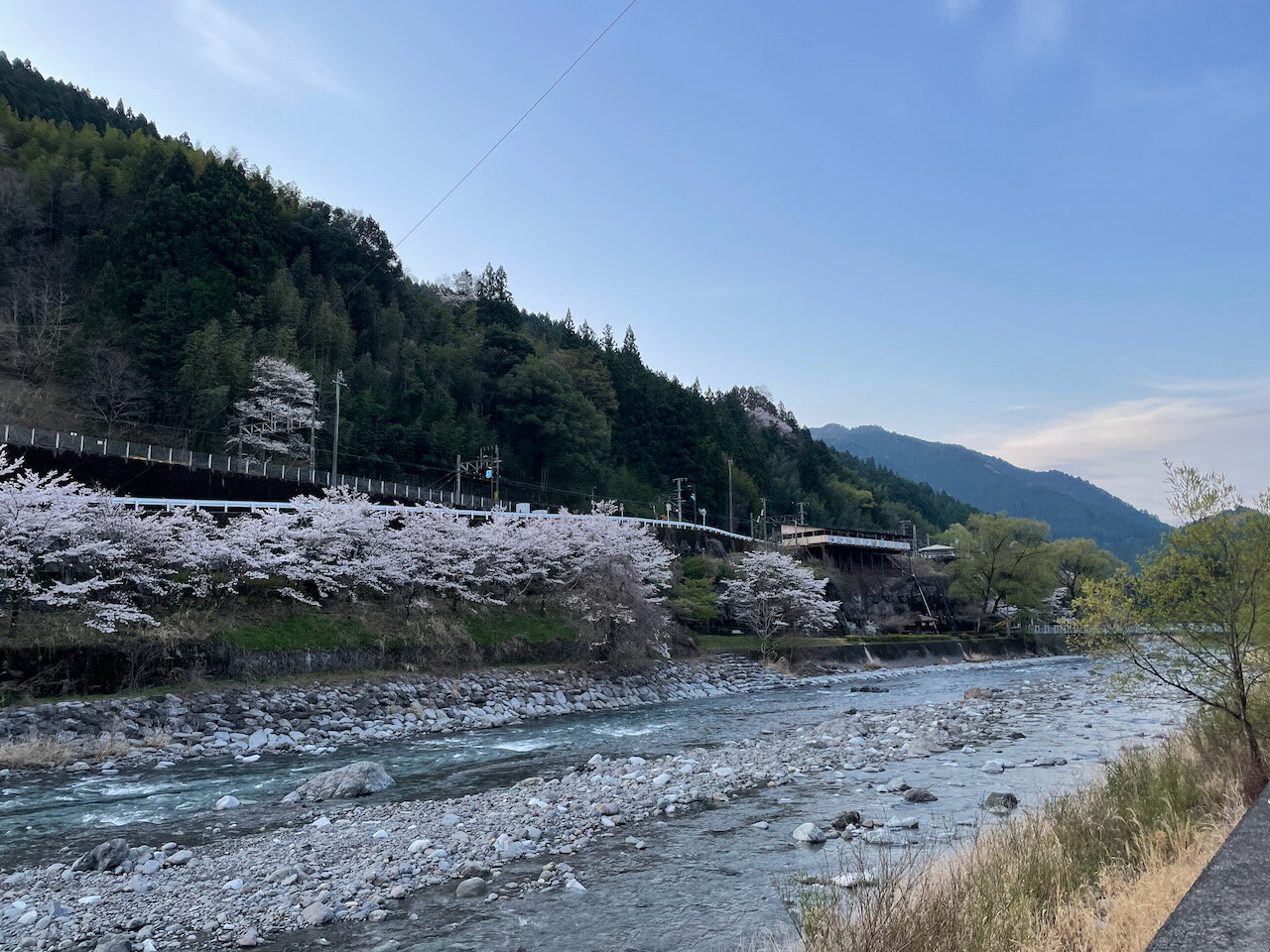 川のせせらぎの音と、うぐいすの鳴き声が気持ちいい朝を演出。