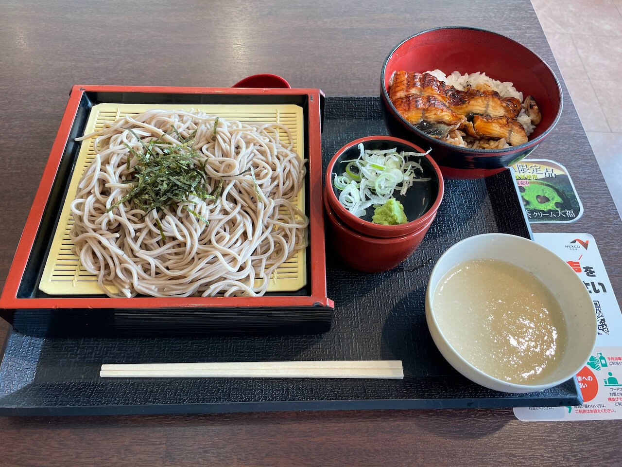 ざるとろ蕎麦(ざるとろ「ろ」じゃないんだ)とうなぎ丼をかっこんで、そのまま無休憩で帰宅です。