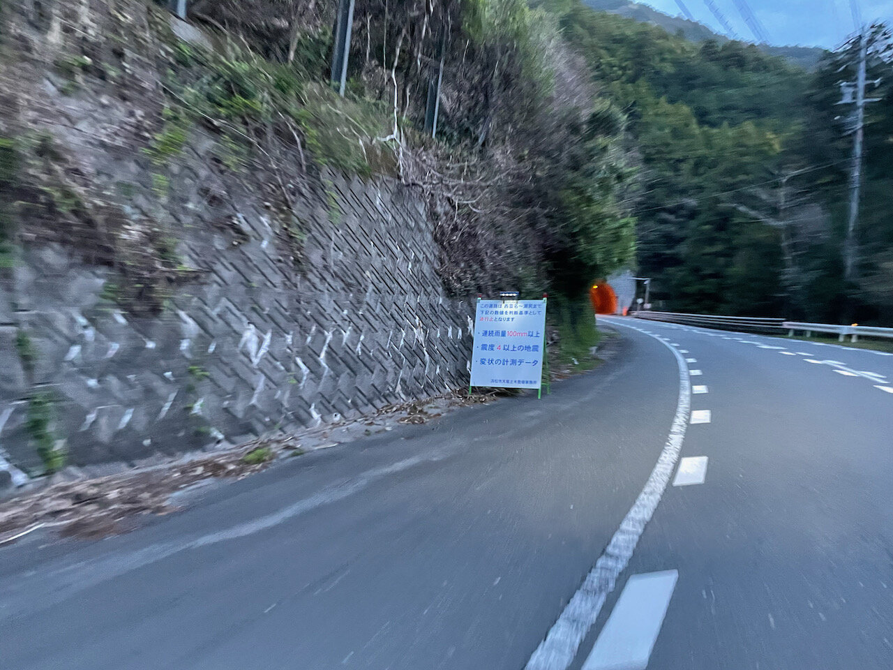 途中の秋葉トンネルは、去年7月の大雨の影響でトンネルに甚大な被害を受けてしばらく通行止めでしたが、年末になんとか復旧作業を行い暫定開通しました。