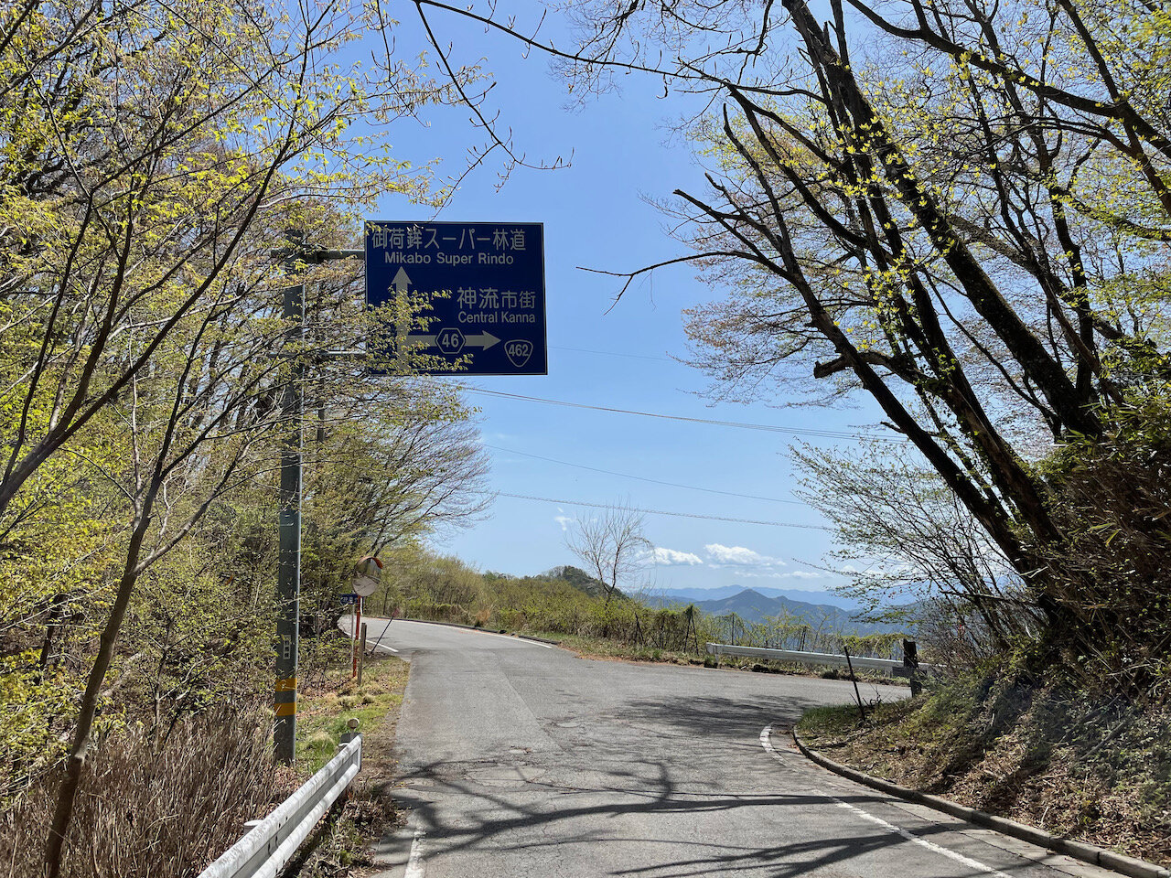 広域農道は林道よりも高規格で開けた場所を通ります。