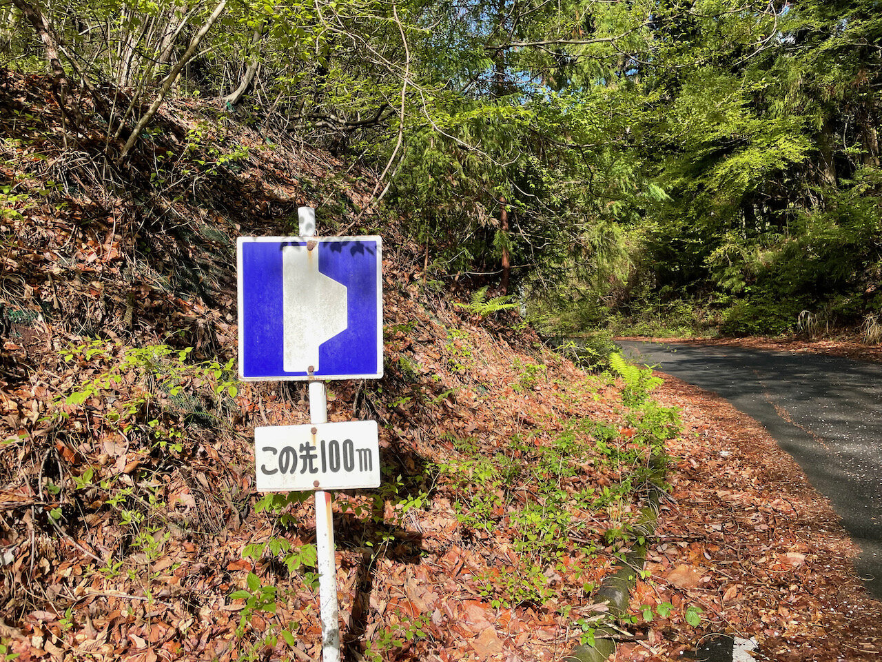 道はほとんどの区間で1.5車線分の幅ですが、先程の画像にもあるように落ち葉で埋まり気味。