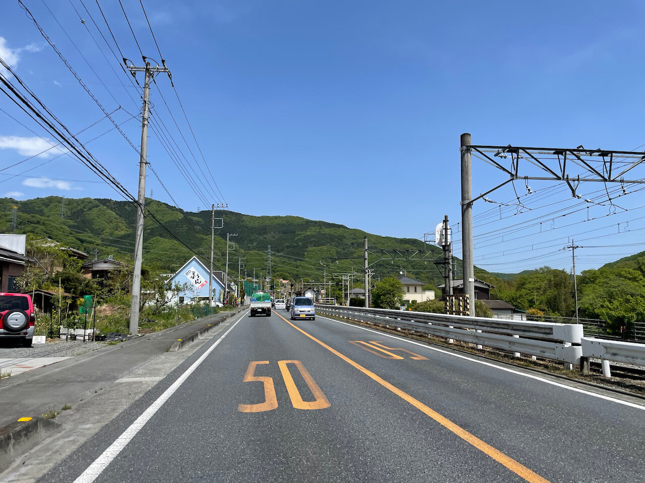 市街地を抜けたので交通量が減りますが、ゆったりした車を追走。
