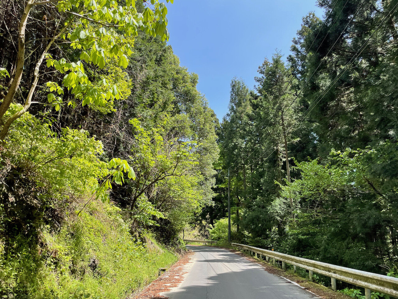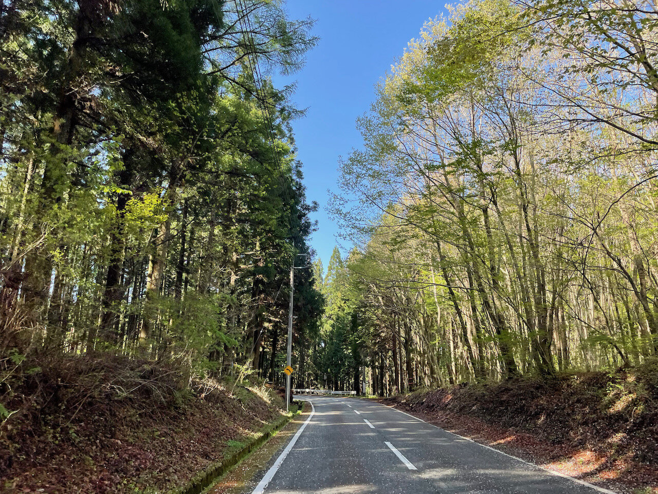 これだけ左右に林が茂っていても、路面が明るいのはいいですね。