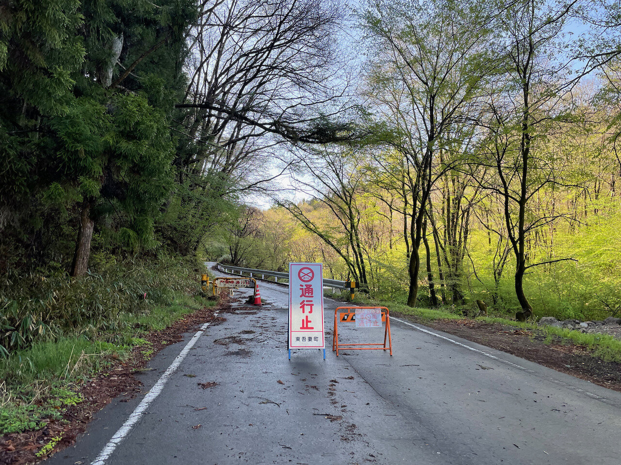 終端を左折し、少し走ると正面に通行止め看板。