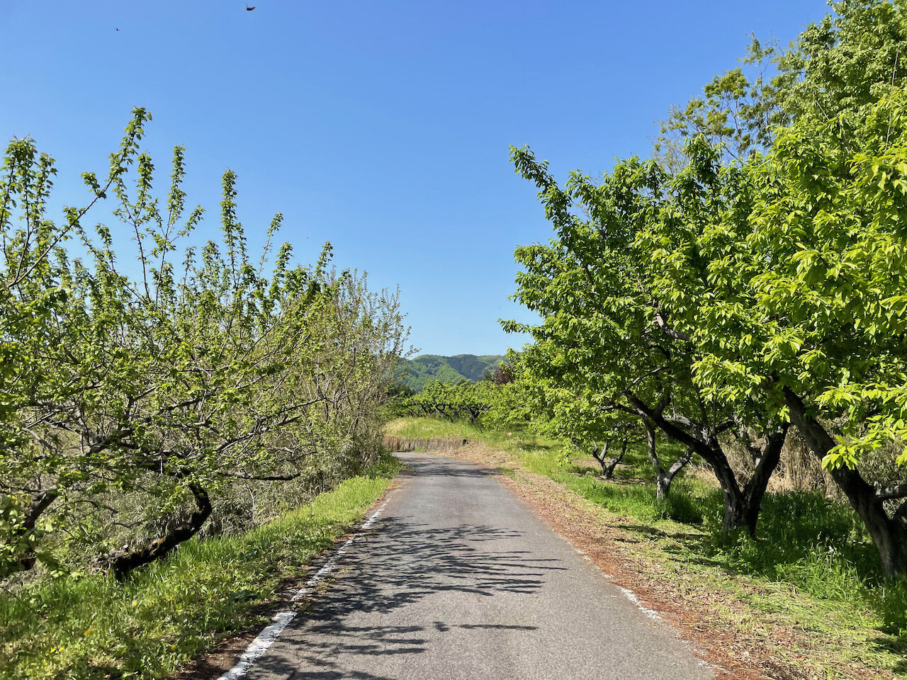 行き止まりからは果樹園の中の農道を抜けて、国道406号へ。