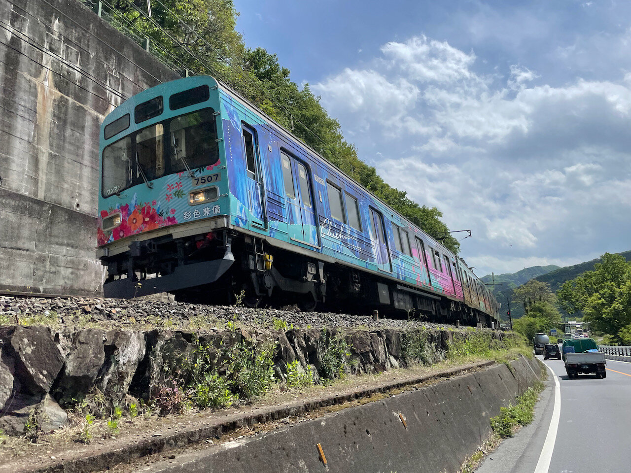 電車を眼前に見たり、貨物列車と並走してみたり、図らずしも鉄分を補給しつつ花園へ。