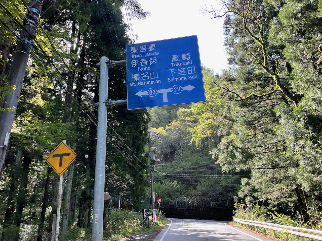 県道153号は榛東(しんとう)村役場の脇を抜けたら、向きを北に変え、榛名山を横に見て斜面に巻きつくような方向に。