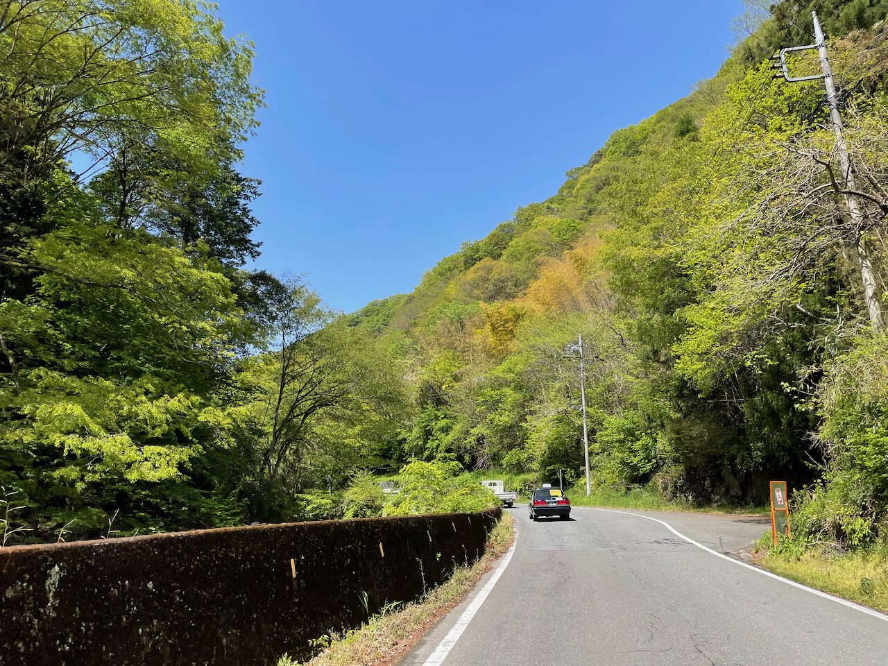 林道だけあって林業関係の車もいて、時折カーブの先からにゅっと現れるデカい林業ダンプにヒヤっとします。